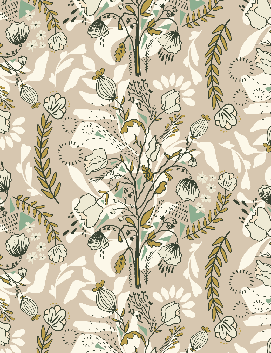 Forest Floor is an ode to everything happening beneath the canopy. This collection draws inspiration from the magic of the understory, where moss softens your step, mushrooms quietly multiply, and fallen leaves tell stories of seasons past. Each print is like a tiny discovery on a woodland walk, from fluttering moths to trailing ferns to the hush of dusk through the trees. It’s textured, wild, and deeply rooted in the quiet wonder that lives just underfoot.